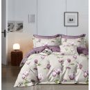 Комплектация: пододеяльник- с цветочным принтом(как на фото); простыня- цвет сиреневый; две наволочки (без "ушек")- в тон простыни.